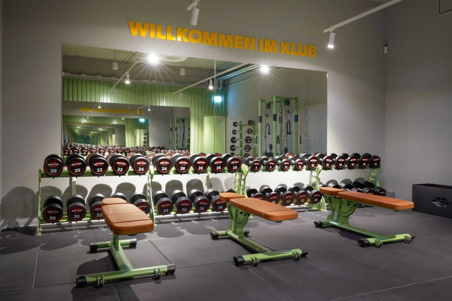 One factor that makes the reduced floor space possible is the sole focus on training equipment and the deliberate omission of changing rooms, lounges, and showers, which can be used at home thanks to the club’s proximity to residential areas. Despite the smaller space, the club offers a range of training options that covers all of its members’ needs: from cardio and free weights to a cardio station, strength machines, and rowing ergometers, members will find everything they need for a varied fitness workout.
